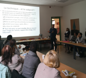 Mardi 26 novembre s’est tenu un nouveau “Café 61” chez notre partenaire StarTech61 à Alençon. Les 18 participants ont assisté à un échange entre un photographe et un journaliste sur la composition d’une photographie et son rôle dans l’illustration d’un article.
