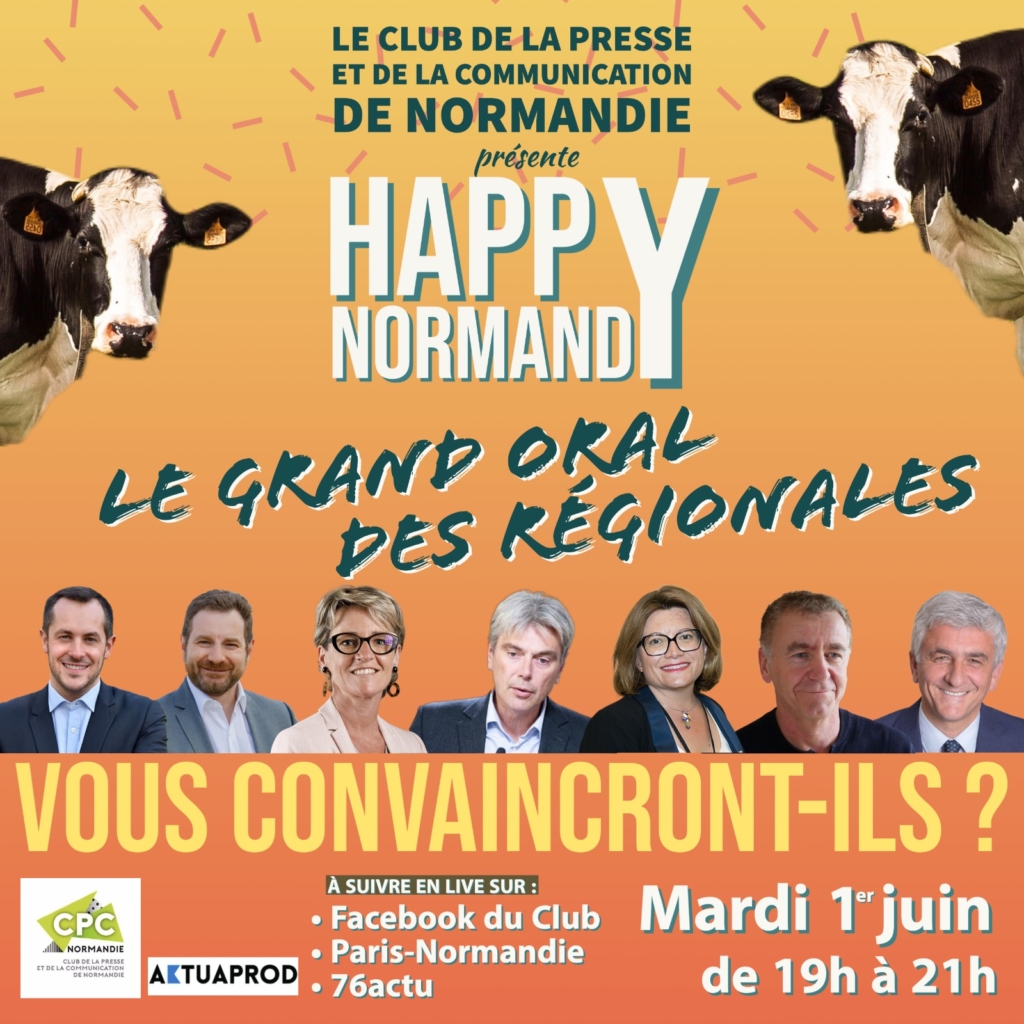 Rien de plus simple. Réalisé par Guillaume Garet et la société Aktua Prod, “le grand oral des régionales” sera retransmis en direct sur le compte Facebook du Club de la Presse et de la Communication de Normandie ainsi que sur le site de Paris-Normandie et celui de 76 actu. Soyez nombreux à nous suivre, le mardi 1er juin de 19h à 21h. Dorothée Brimont présidente du Club et journaliste à Paris-Normandie, Jean-Baptiste Morel, rédacteur en chef de 76actu et Vincent Lalire, enseignant en communication politique animeront ce débat.