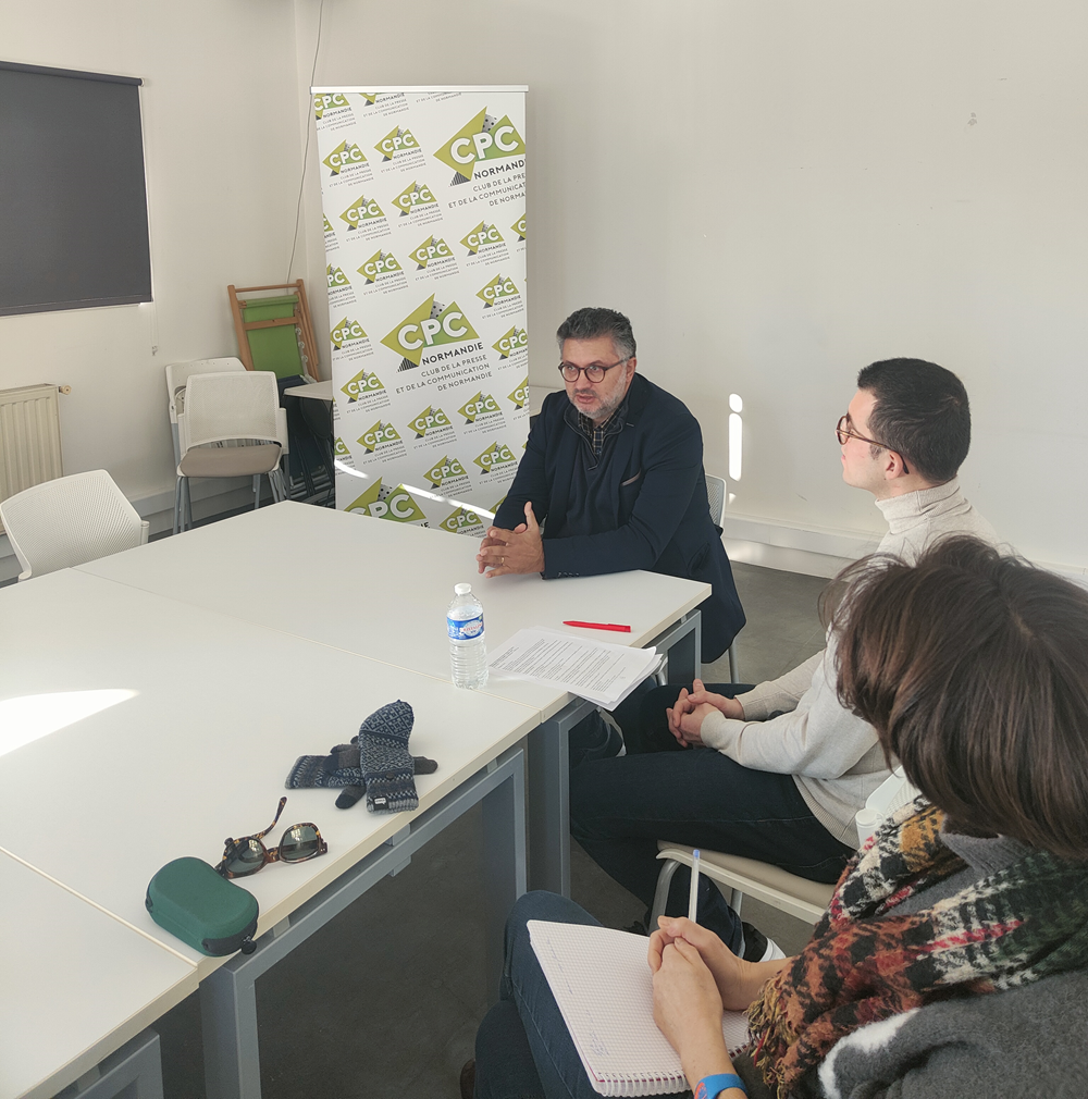 Une vingtaine de participants sont venus écouter Édouard Reis-Carona, directeur du pôle audiovisuel de Ouest-France, au Pavillon à Caen. Il a présenté les projets mis en place par le quotidien autour de l’image et du son, avec notamment la création d’une chaîne nationale présélectionnée par l’Arcom (le régulateur de la communication audiovisuelle et numérique) en juillet dernier.