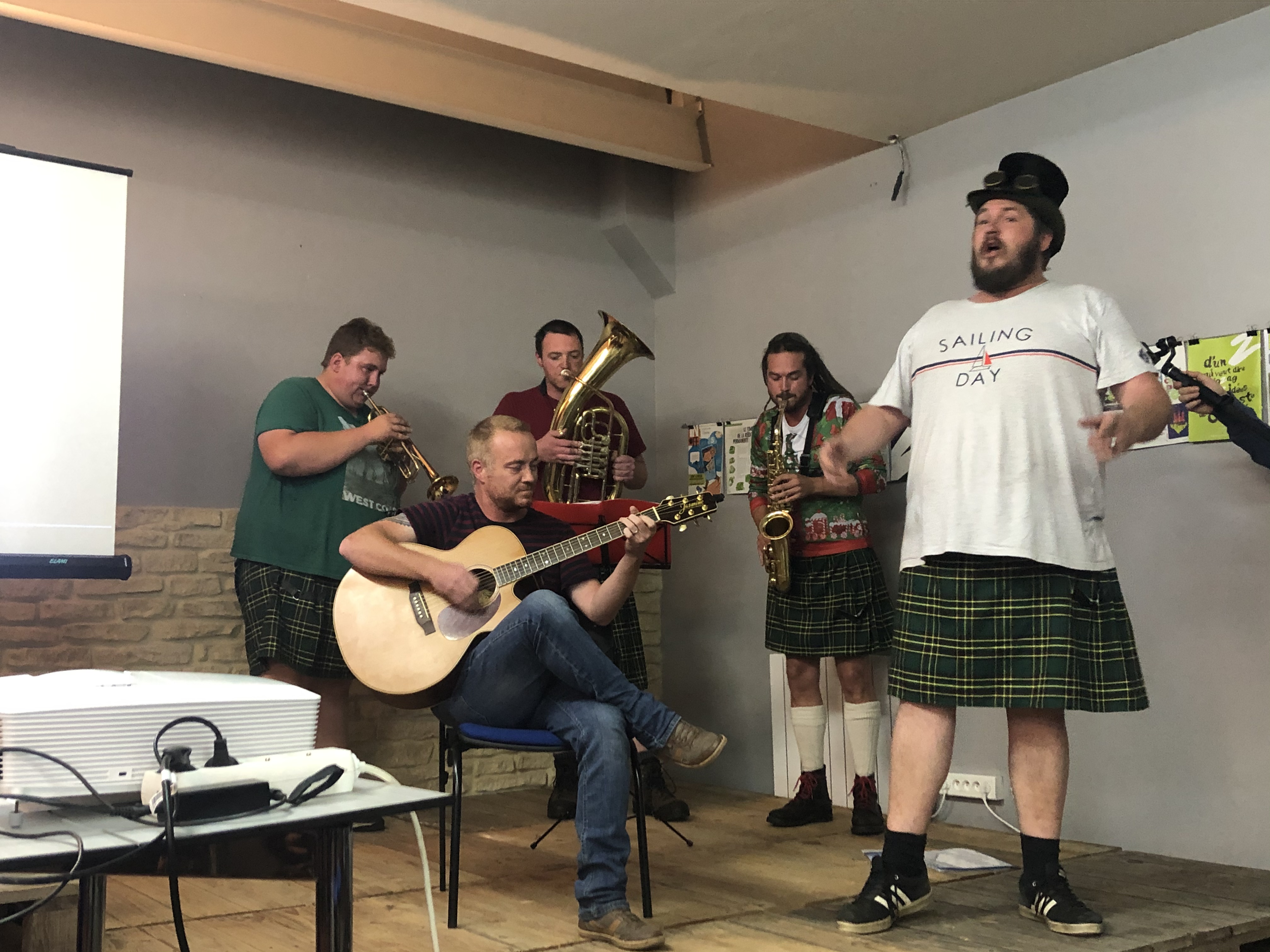 Sept chanteurs ou groupes s’enchaîneront sur la scène de la salle du Val Doré : Skabada Tsoin Tsoin (ska), For the Hackers (Electro-pop), Breaststroke Brass Band (fanfare cuivrée), Makasiwe (reggae), Stan the flasher (rock), Déborah (chanson française), The Eggz (rock). Ce sont ces mêmes artistes que nous avons reçu sur la “scène” du Club mardi pour une ou deux chansons chacun, après que Sylvain Guéraiche ait présenté l’événement.