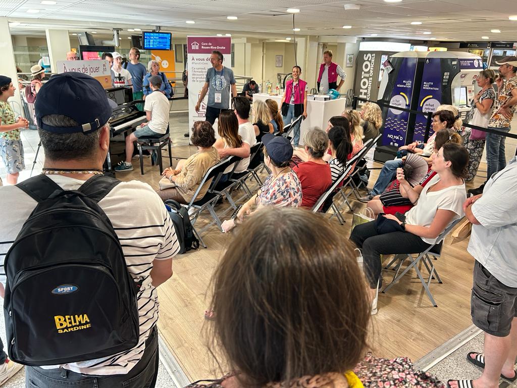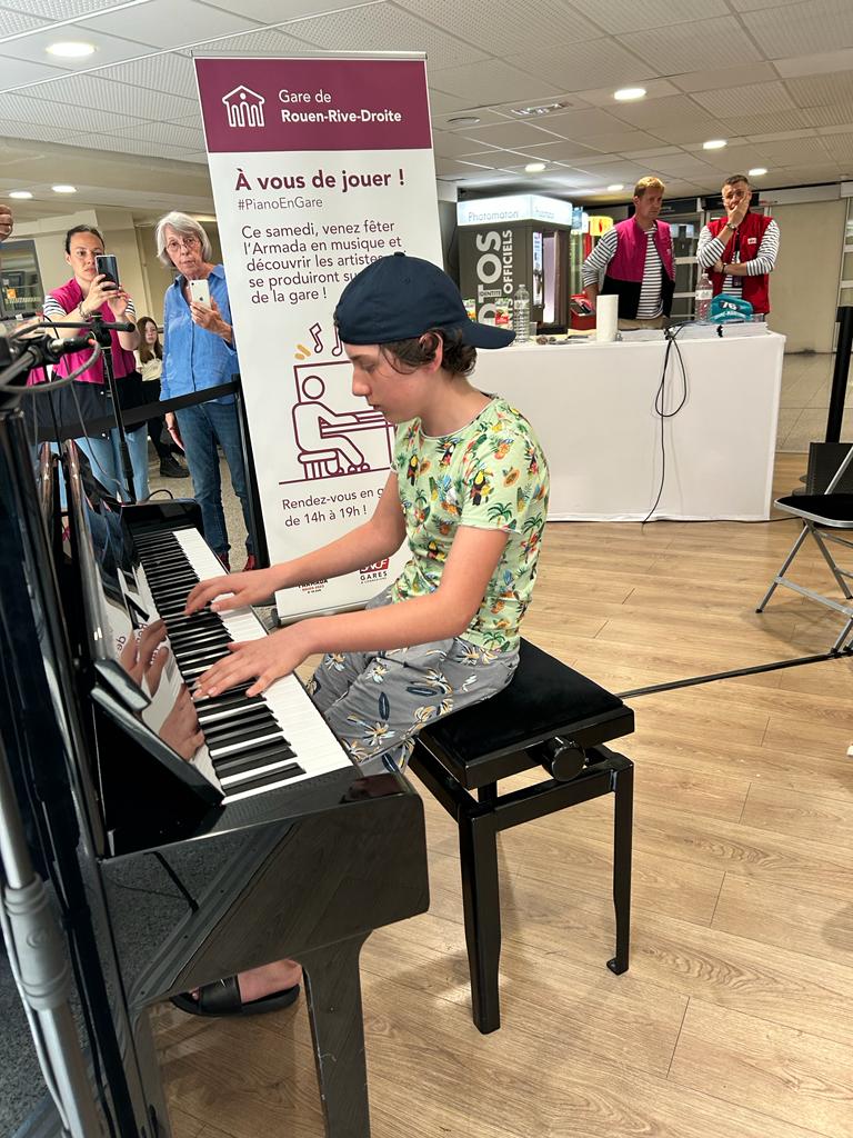 De jolies rencontres précisément, il y en eut ce samedi 10 juin. C’est donc à l’invitation conjointe du Club et de Gares & Connexions qu’une vingtaine de pianistes amateurs s’étaient donnés rendez-vous dans le hall voyageur de la gare de Rouen. Pas de figures imposées, sinon de ne pas dépasser les quatre minutes par morceau. Une seule consigne : faites-vous plaisir et partagez avec le public de passage votre passion du piano.