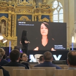 ➡️ Mathilde Sassier-Roublin, doctorante en informatique à l’Insa Rouen Normandie, a eu la lourde tâche de reprendre la parole après la pause du matin. Et le silence s’est fait dès que son robot Camille, a pris la parole. Le robot s’exprime, l’humain se tait.