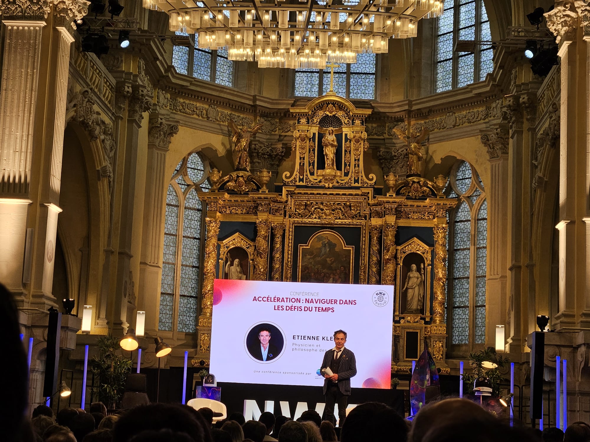 ➡️ Etienne Klein, philosophe des sciences et physicien emblématique, a abordé les défis et perspectives de l’accélération humaine et technologique. Rassurez-vous, rien ne sert de se presser, “Nous sommes à fond” – rapport à la vitesse de la Terre dans l’espace. Et si notre pouce est capable de parcourir près de 100km par an sur notre écrant de smartphone, c’est bien que tout va plus vite.