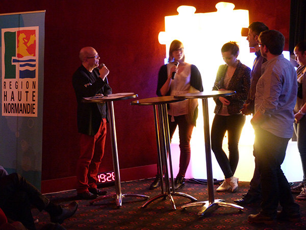La remise des prix de l’édition 2015 du concours 1 Jour 1 JT a eu lieu au cinéma Omnia République à Rouen, vendredi 27 mars. En présence des lauréats, des partenaires* et d’un public venu nombreux, nous avons pu découvrir les réalisations des 8 équipes (6 TV, 2 radio) :