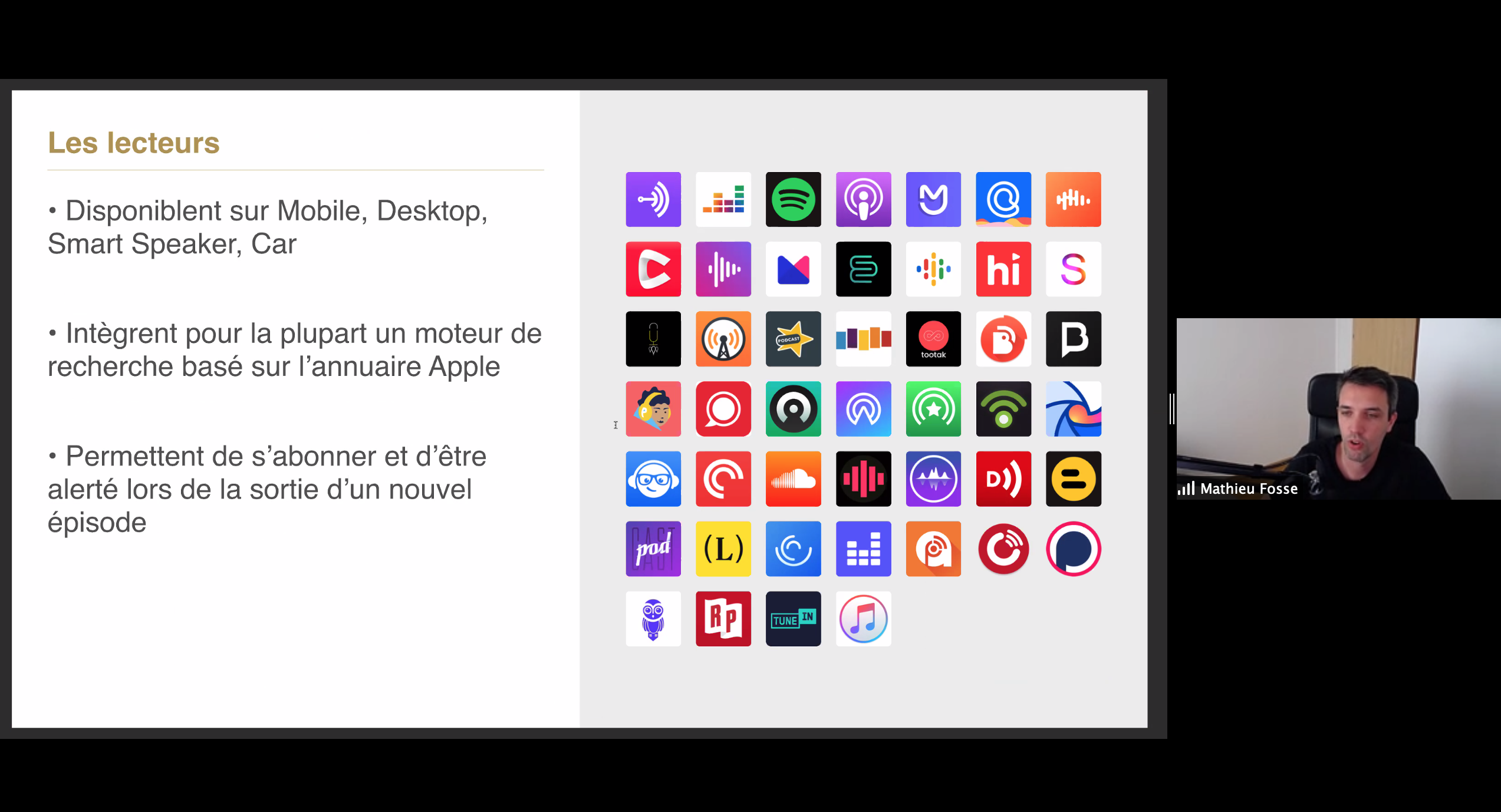 Profil type des adeptes de podcasts, avantages et opportunités étaient au programme de la présentation d’Ambroise Carrière, tandis que Mathieu Fosse qui a suivi s’est plus concentré sur la distribution – lecteurs, annuaires, hébergeurs – ainsi que sur les audiences.