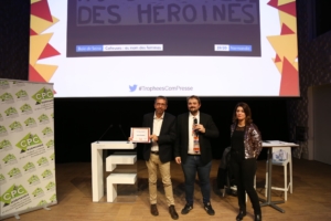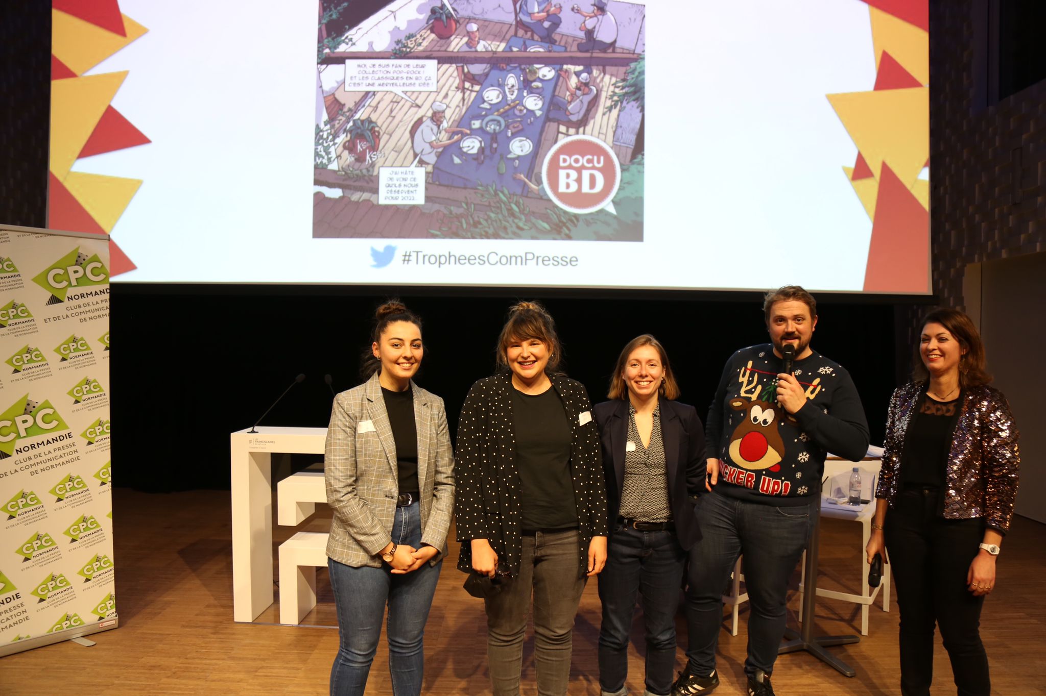 L’évènement a également été retranscrit en direct sur notre compte Twitter : @pressecomndie où vous pouviez également y retrouver l’ensemble des nommés, des lauréats, ainsi que les noms de nos partenaires (#TropheesComPresse)