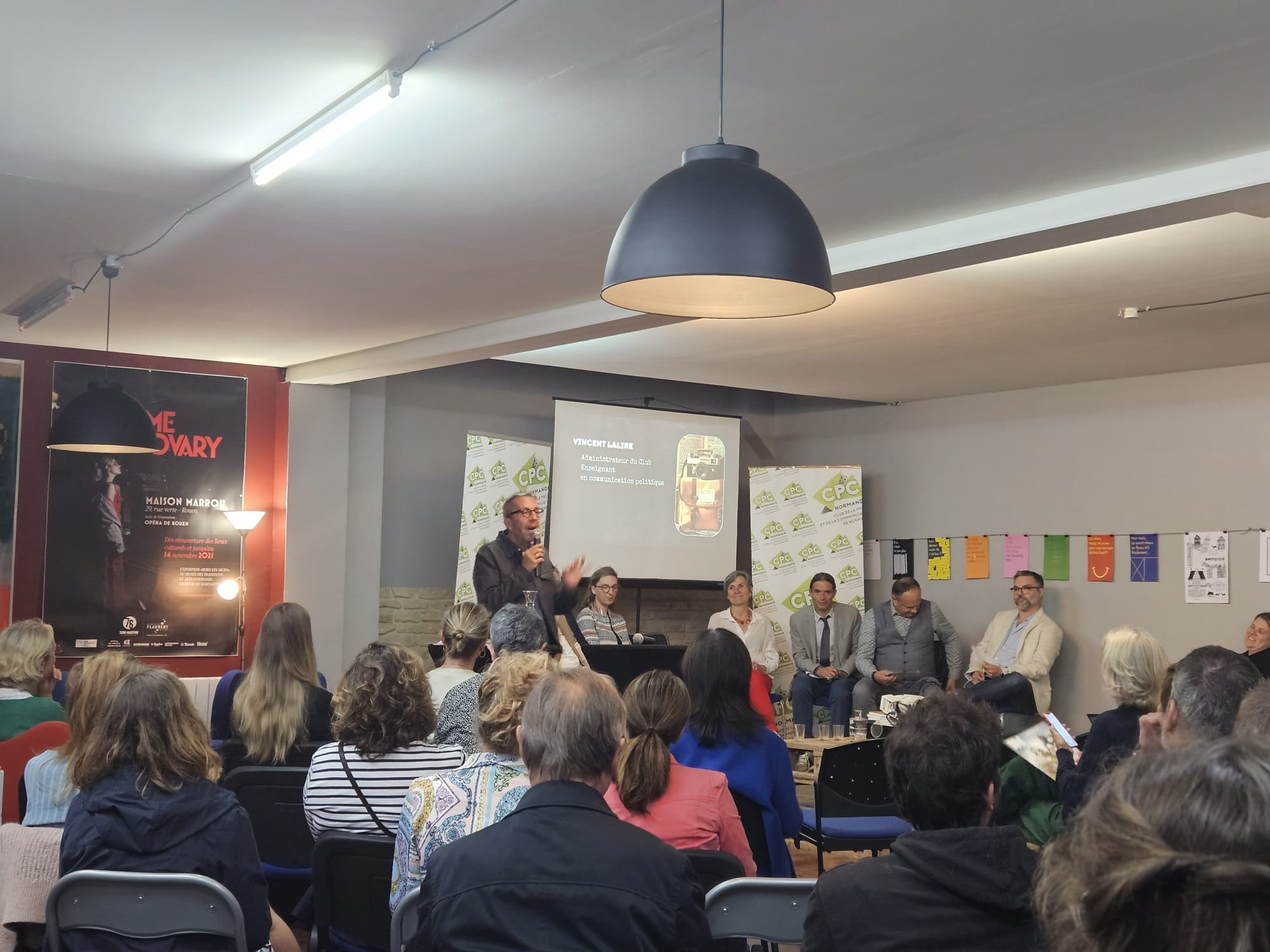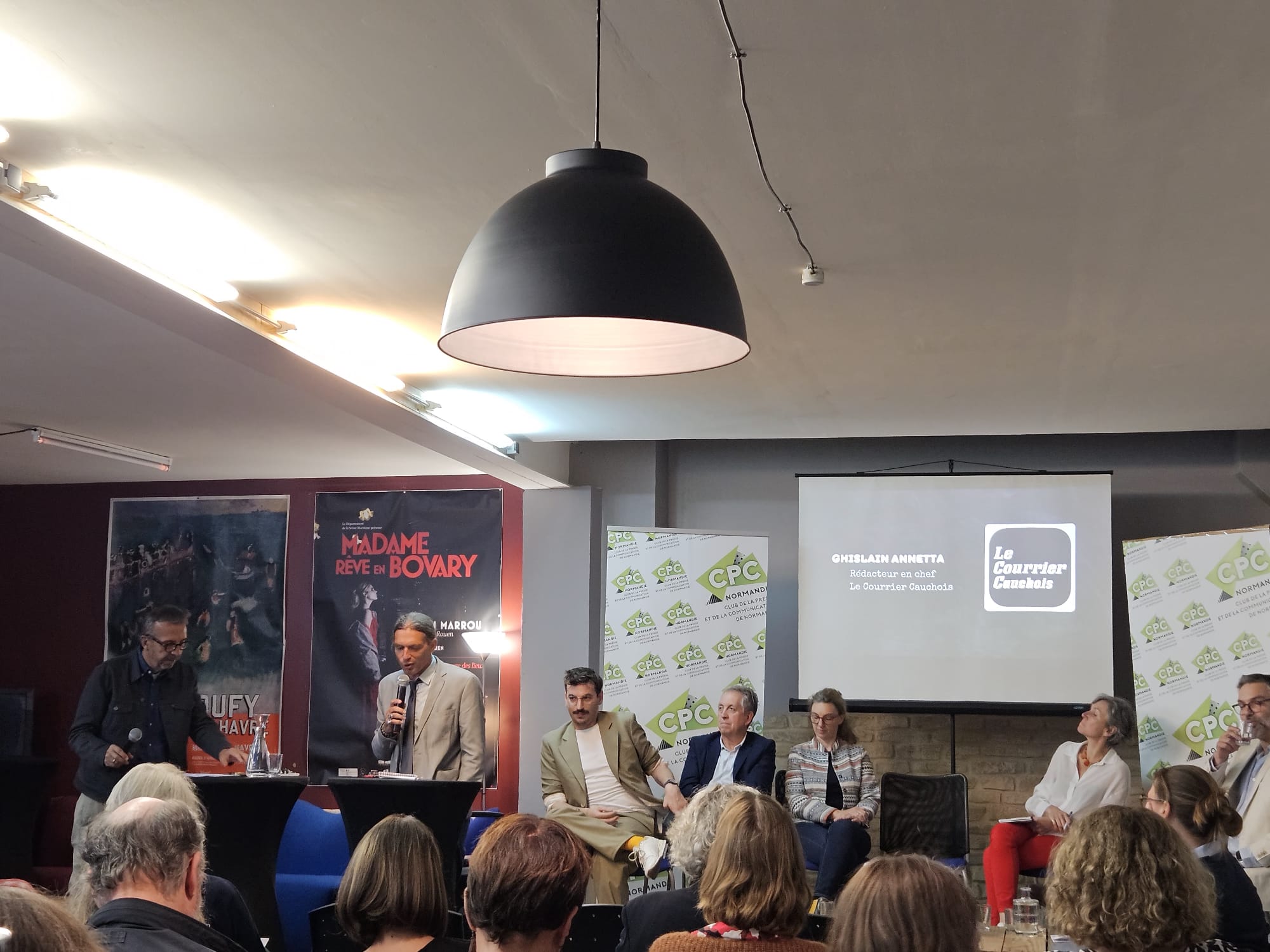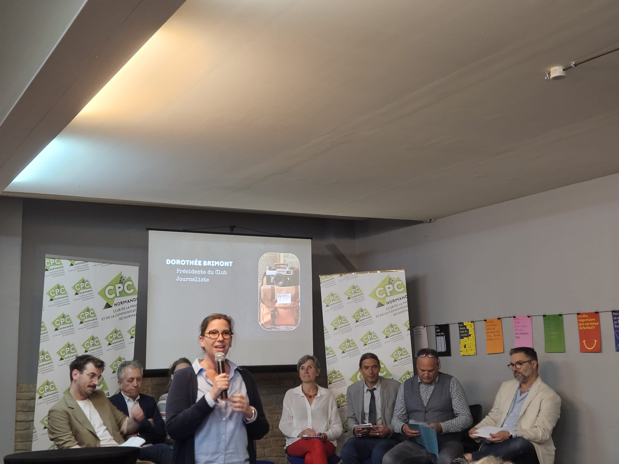Jeudi 5 septembre, le Club recevait huit grandes rédactions normandes pour un plateau de rentrée : 76Actu, BFM Normandie, Le Courrier Cauchois, France 3 Normandie, France Bleu, Ouest-France, Paris Normandie et RCF. L’occasion pour la soixantaine d’adhérents présents de mieux connaître le fonctionnement de ces médias. Avant que chacun ne prenne la parole, Dorothée Brimont, présidente du Club, a rappelé que cette année nous célébrons 80 ans de la naissance des médias comme Ouest-France (7 août 1944) ou Paris Normandie (1er septembre 1944). 80 ans de presse libre.
