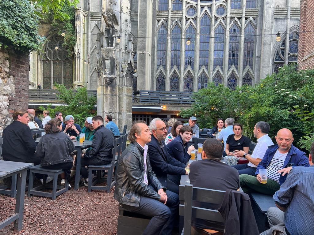 C’est sous le soleil et l’oeil de Saint-Nicaise qu’une vingtaine d’adhérents communicants se sont retrouvés dans le bier garten de Ragnar, dans les jardins de l’Église-Brasserie Ragnar à Rouen, ce jeudi 1er juin au soir.