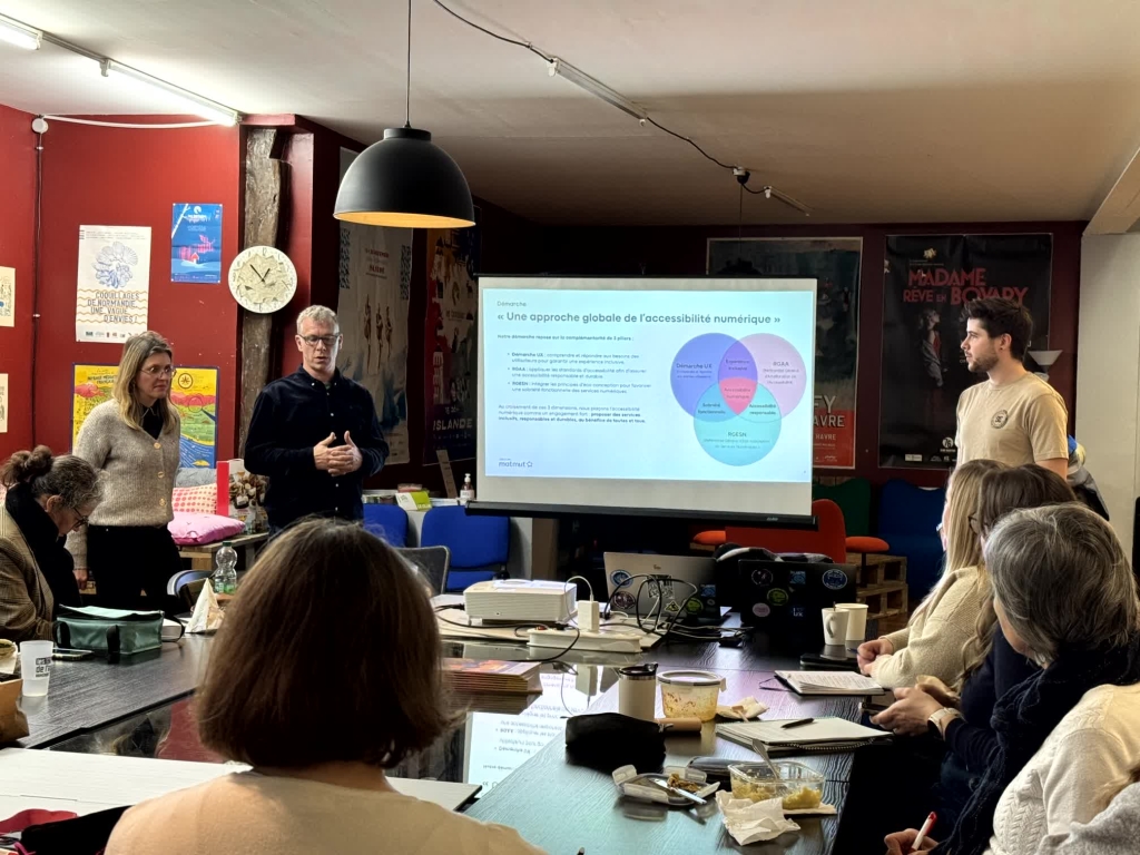 Mardi 27 janvier, Mathieu Trédet et Alexandre Prévots, UX/UI designers, accompagnés d’Audrey Moisan, chargée de communication institutionnelle, ont partagé les coulisses d’un projet d’ampleur : la refonte du site institutionnel du Groupe Matmut, récemment primée aux Cas d’Or 2025 dans la catégorie accessibilité numérique. Sur ce temps du midi toujours convivial, un vingtaine d’adhérents étaient venus profiter de ce retour d’expérience.