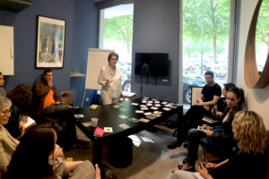Ce mardi 28 mai, Odile Mora, coworkeuse chez notre partenaire Hey! à Caen, animait le petit-déjeuner sur les changements dans la vie professionnelle. Elle a d’abord proposé aux participants de choisir une carte dont l’illustration représentait pour chacun le changement, point de départ des échanges de la matinée.