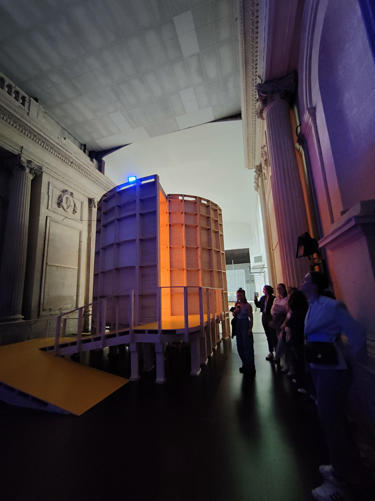 Ils ont ensuite exploré le point numéro 5 du parcours, situé à la Coopérative Chorégraphique, où une œuvre immersive nommée “Tank” captivait les sens avec son jeu de lumières et de sons. L’accès à l’intérieur de cette installation a permis à chacun de l’interpréter et de la ressentir à sa manière.