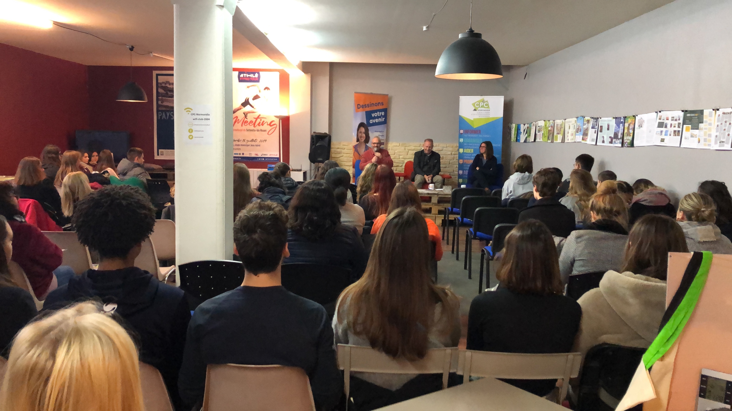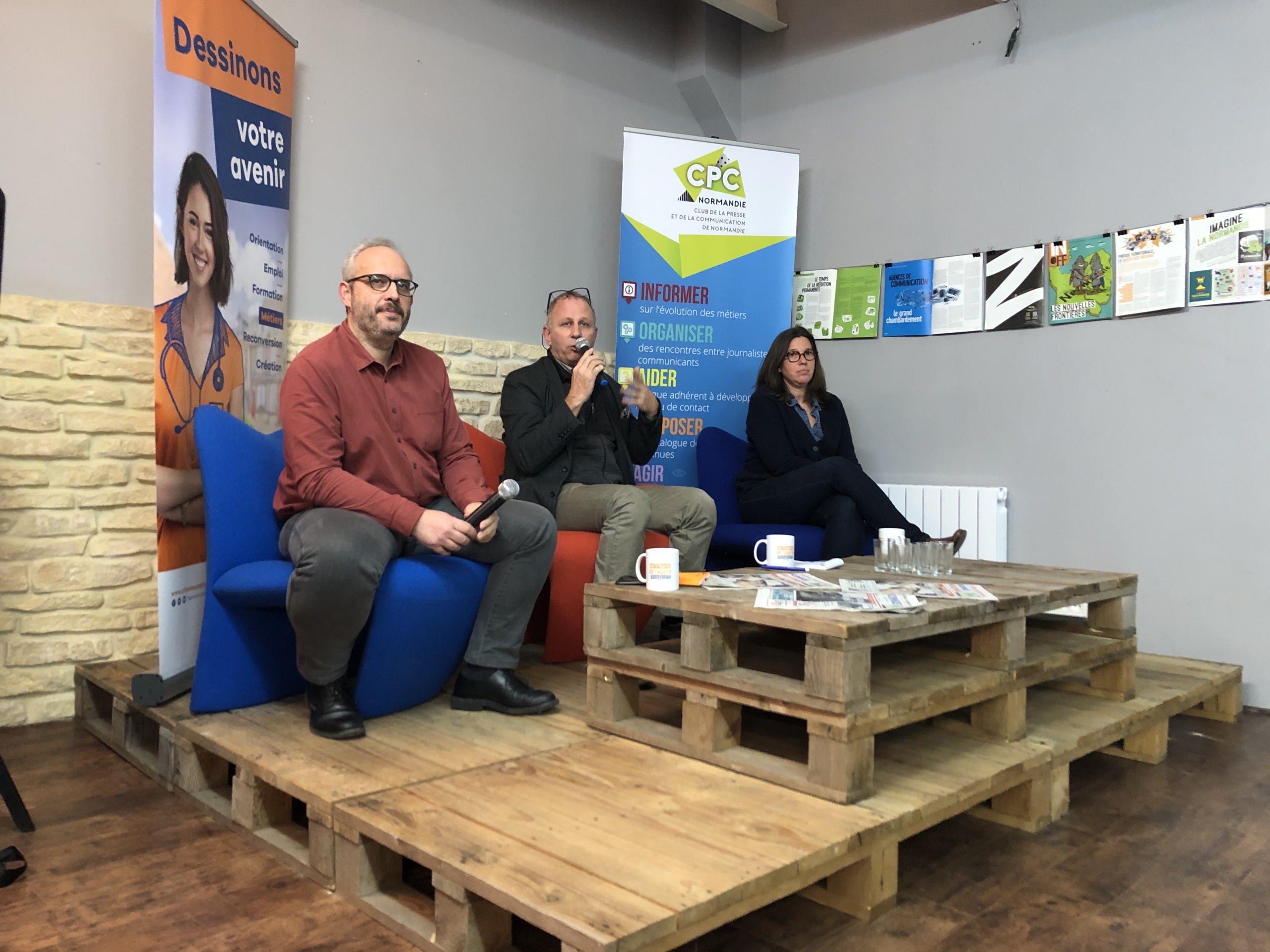 A Rouen, c’est dans les locaux du Club qu’ont été reçus plus d’une centaine de lycéens et d’étudiants sur le même format. La première table ronde a réuni trois journalistes venus partager leurs parcours, expériences et une même passion du métier. Ainsi Sébastien Bailly, journaliste pigiste pour Ouest France et formateur, Dorothée Brimont, journaliste reporter d’image à Paris Normandie et Thierry Delacourt, rédacteur en chef adjoint à Paris Normandie, en charge des éditions du dimanche, ont répondu aux nombreuses questions des jeunes présents, en rapport comme à Caen, avec l’actualité et une montée de la défiance.
