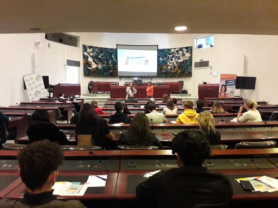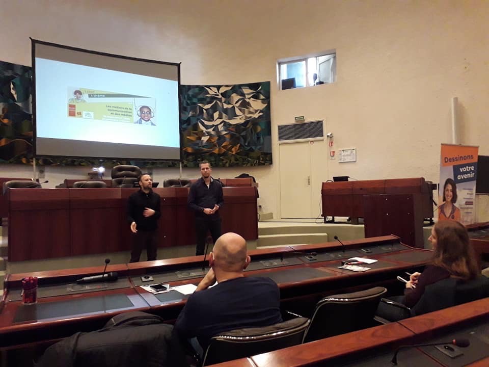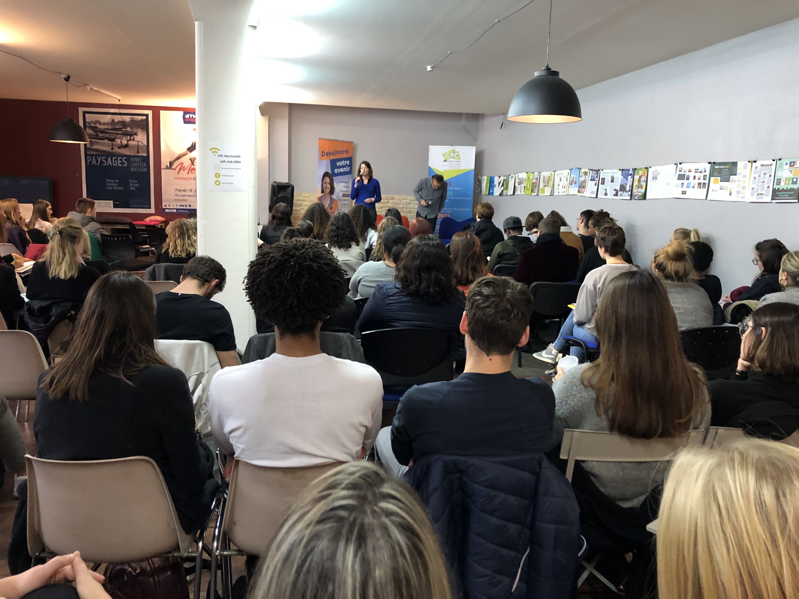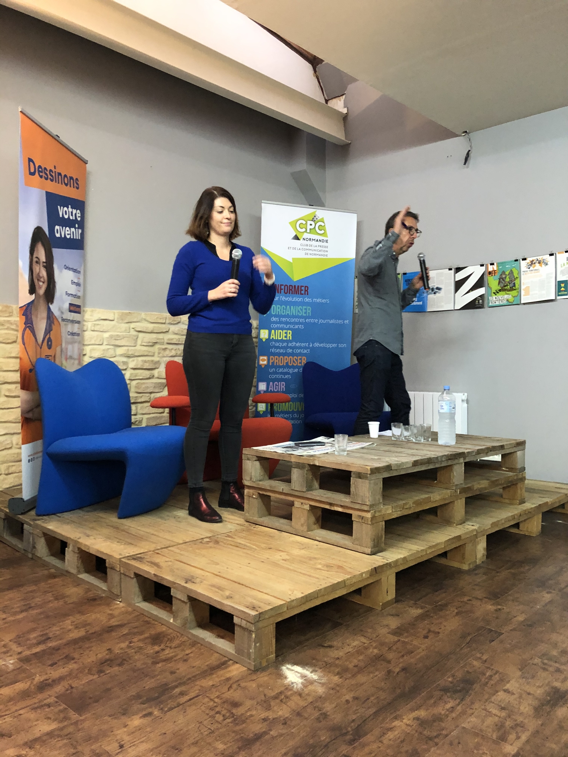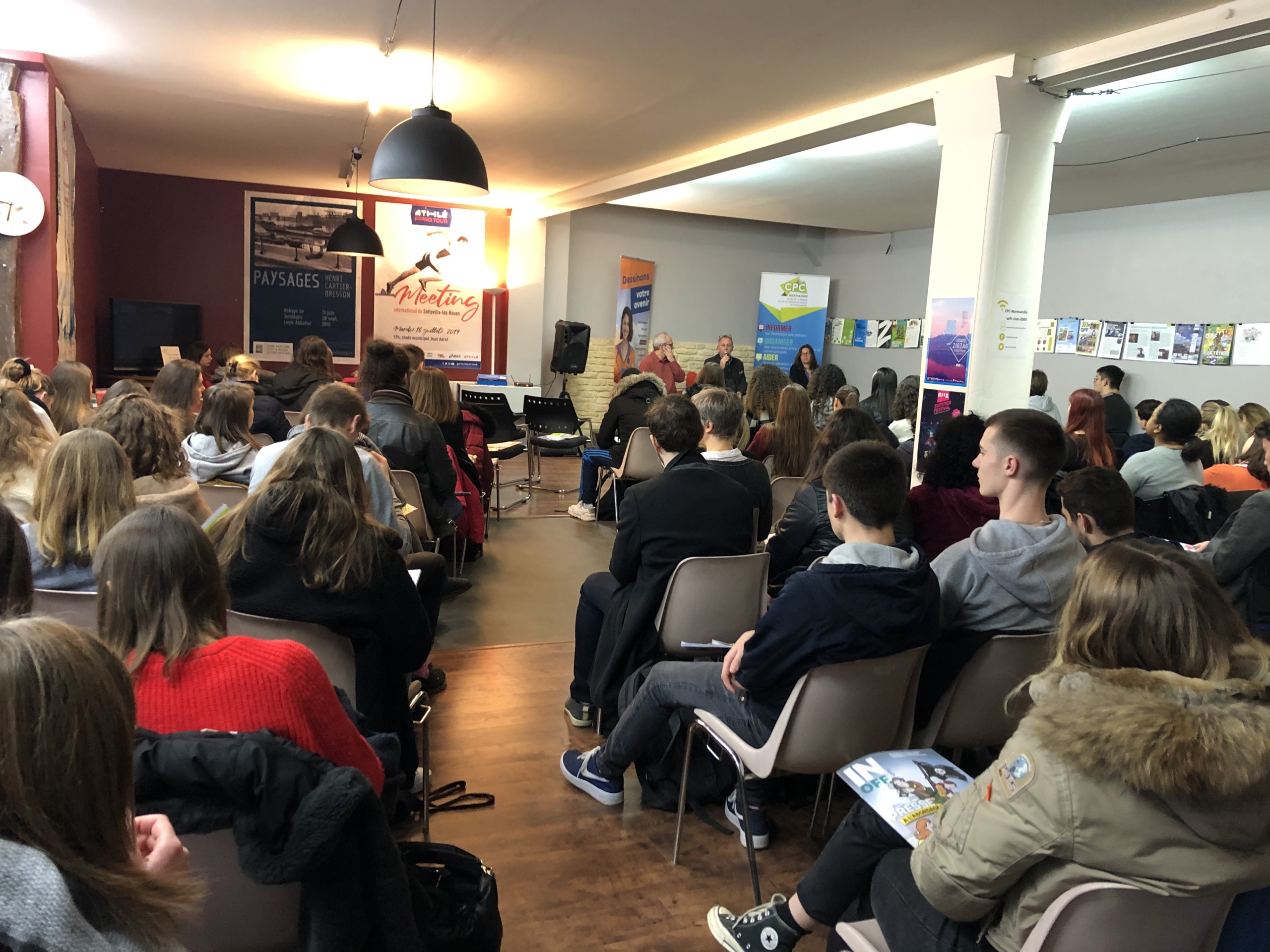 A suivi, une deuxième table-ronde sur les métiers de la communication avec deux professionnels partageant la même envie de transmission aux lycéens et étudiants présents. C’est Vincent Lalire, responsable de la communication interne du Département de Seine-Maritime et Camille Rousée, responsable communication du Stade Sottevillais et chargée de communication du Rouen Normandy Rugby.