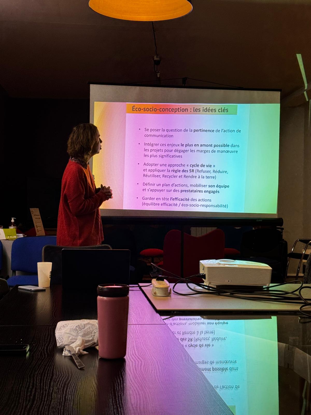 • Éco-socio-conception des projets et des supports : trouver l’équilibre entre être responsable et atteindre son objectif, se poser la question de la pertinence de l’action de communication, adopter une approche “cycle de vie”, définir un plan d’action et s’appuyer sur des partenaires engagés.