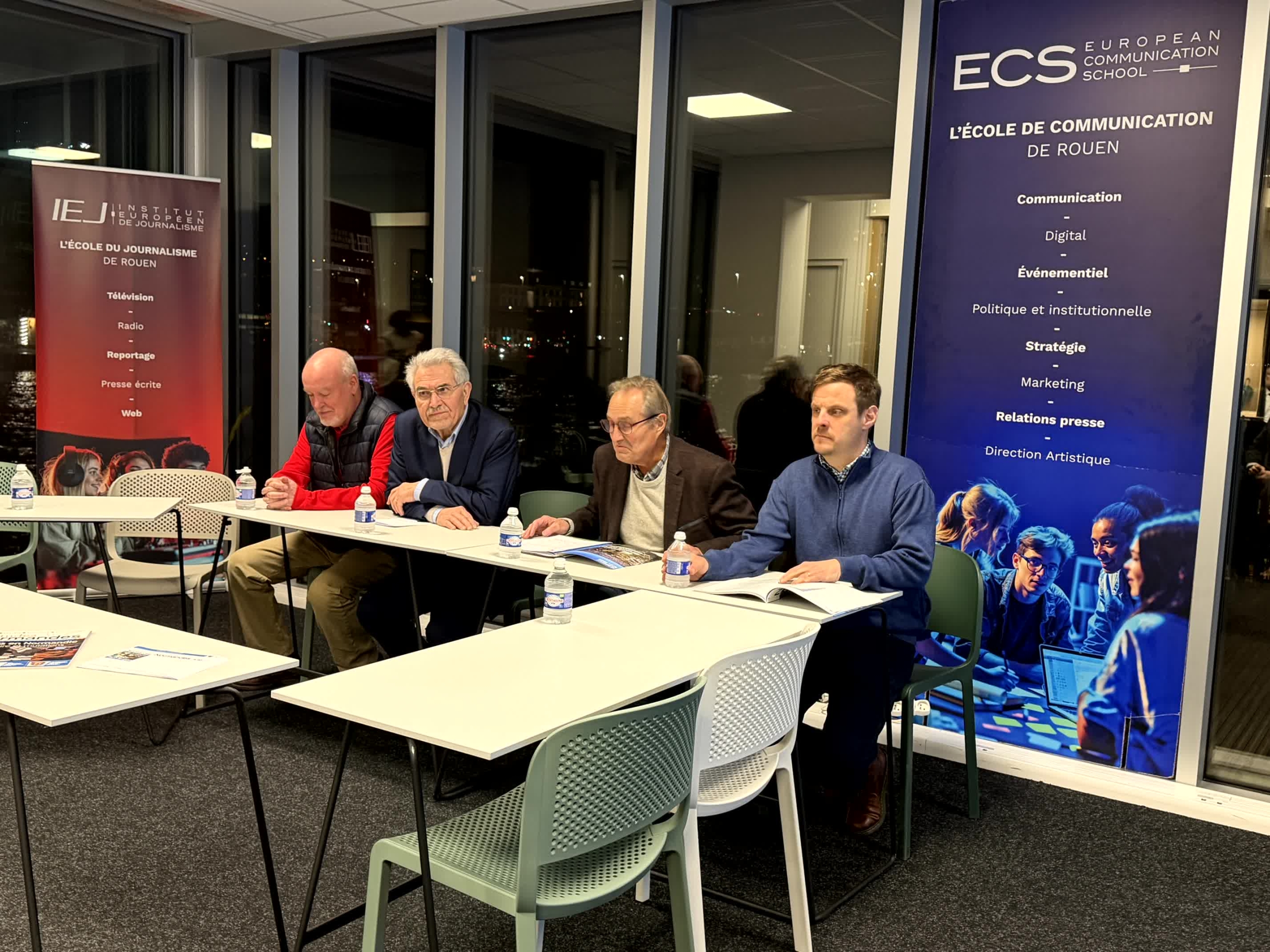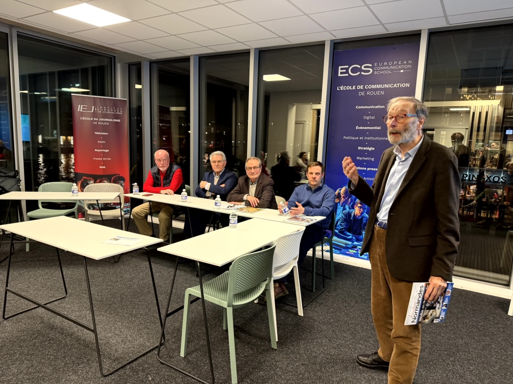 Mardi 3 février, l’IEJ Rouen a accueilli Jean-Marie Charon et Béatrice Picard pour présenter le dossier « Médias en Normandie – Histoire et mutations », publié dans le numéro 36 de la revue Études Normandes. Cette rencontre, organisée pour une dizaine d’adhérents du Club et une vingtaine d’étudiants en journalisme, a permis d’explorer plus de deux siècles d’histoire médiatique régionale à travers trois regards complémentaires.