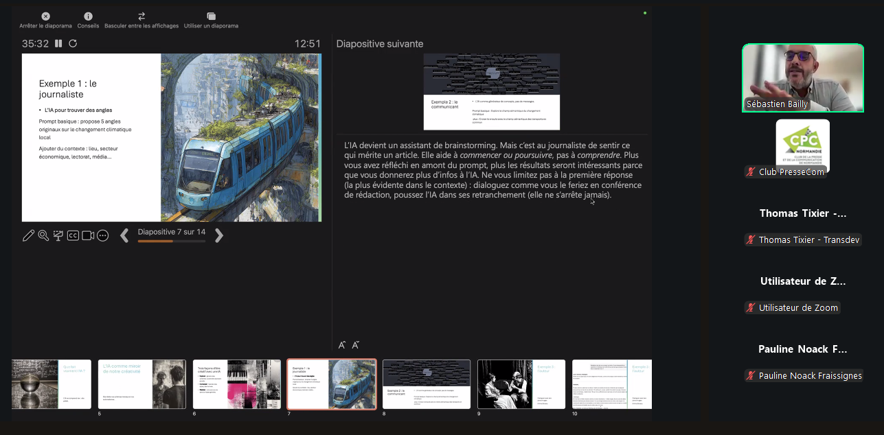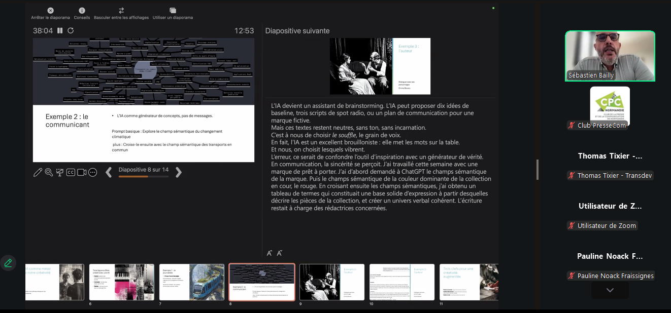 Pour tirer le meilleur parti de ces outils, Sébastien Bailly a rappelé trois principes essentiels. D’abord, penser en prompt : être précis dans ses demandes et le contexte fourni. Ensuite, cultiver l’étonnement : dans la créativité, il n’y a pas de “bonne” réponse. Enfin, garder la main : l’IA ouvre des portes insoupçonnées mais ne remplace jamais la sensibilité et la nuance humaines.