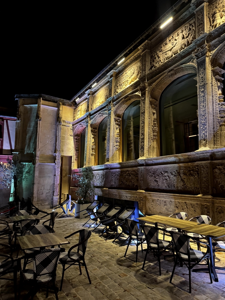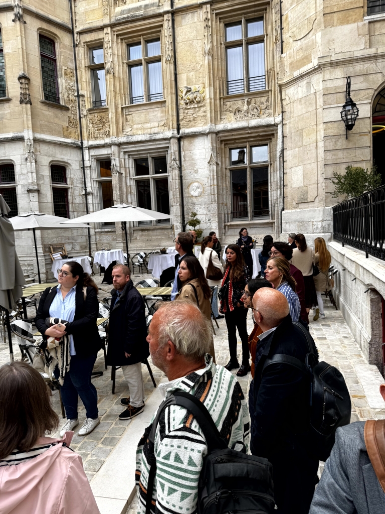 C’est dans un cadre d’exception que s’est déroulé l’apéro de rentrée du Club, ce mardi 16 septembre, grâce à l’invitation de Céline Moulin, adhérente et nouvelle directrice de l’Hôtel de Bourgtheroulde. Nous étions une petite trentaine réunie pour découvrir ce joyau architectural du XVIe siècle, classé Monument historique et situé place de la Pucelle, à quelques pas de nos locaux rouennais.