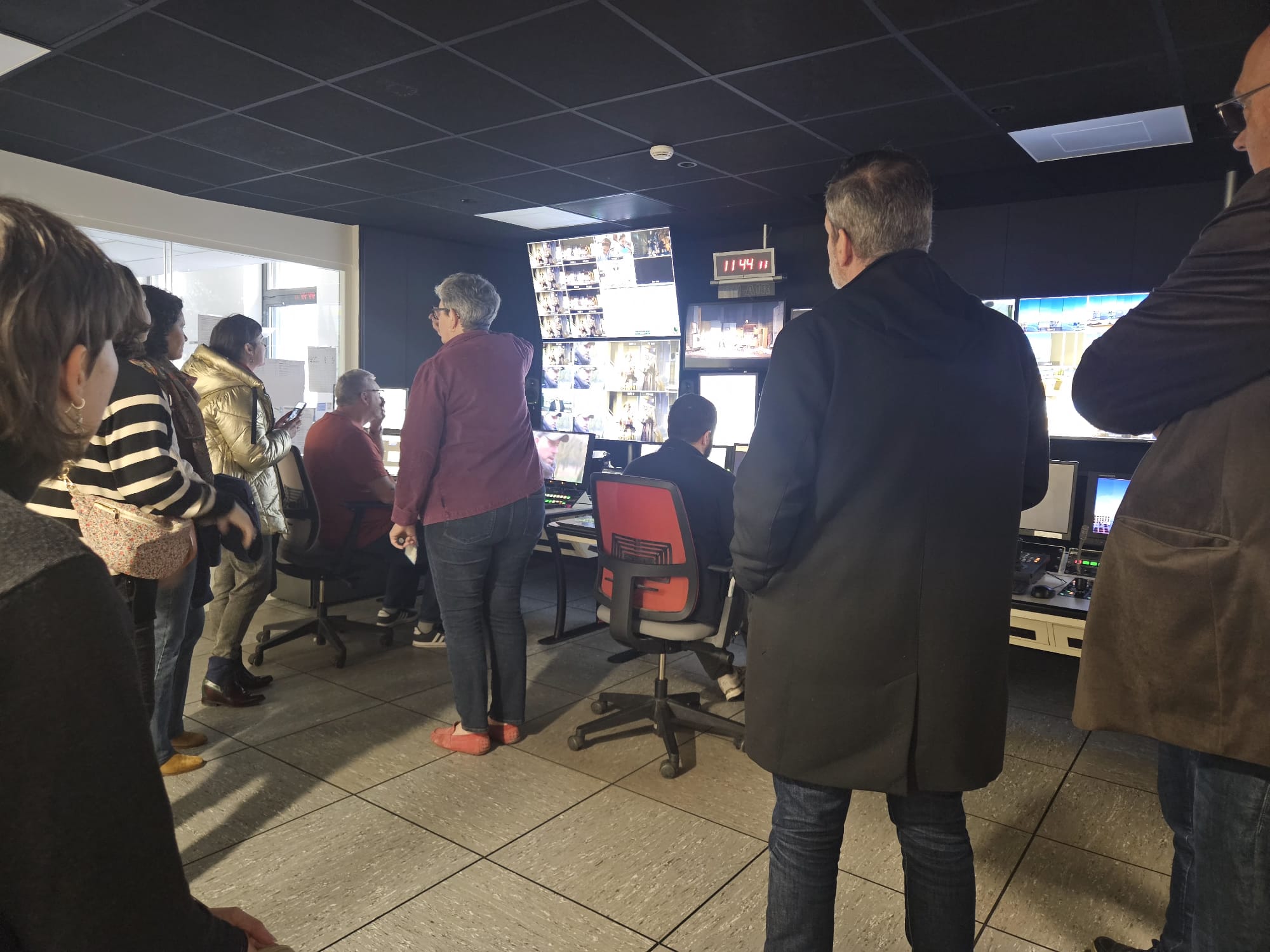 Ces visites, orchestrées par Fabienne Bahin, déléguée régionale à la communication, ont offert à nos deux groupes de huit personnes une immersion complète dans l’univers de la télévision régionale, incluant même la possibilité d’assister en direct au journal télévisé du midi depuis les coulisses.