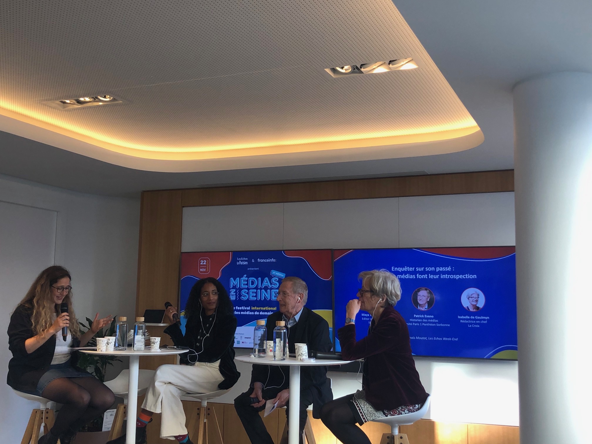 Notre volontaire a également assisté à des tables rondes sur l’introspection du passé de certains médias, comme The Guardian ou encore le journal La Croix; ou sur les avancées et les perspectives d’avenir six ans après MeToo. La dernière heure de la journée était destinée à l’avenir des jeunes journalistes, avec notre adhérent Jean-Marie Charon entouré de trois directeurs d’écoles de journalisme.