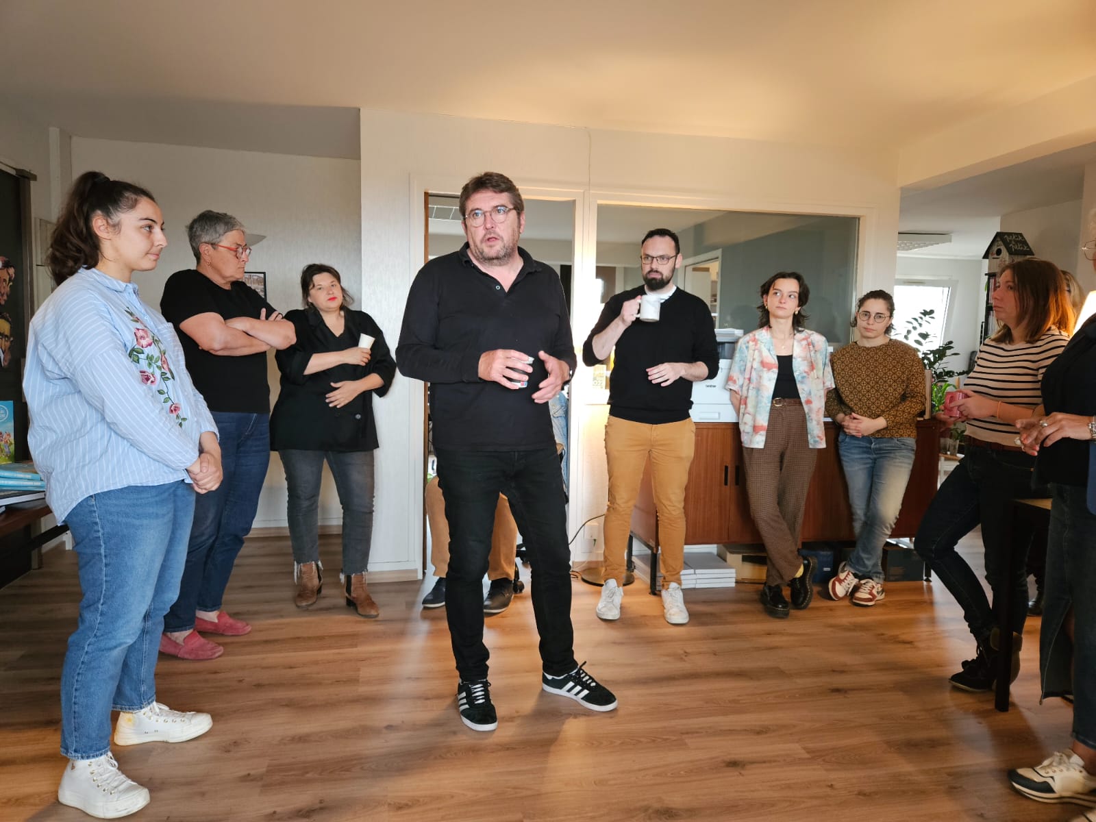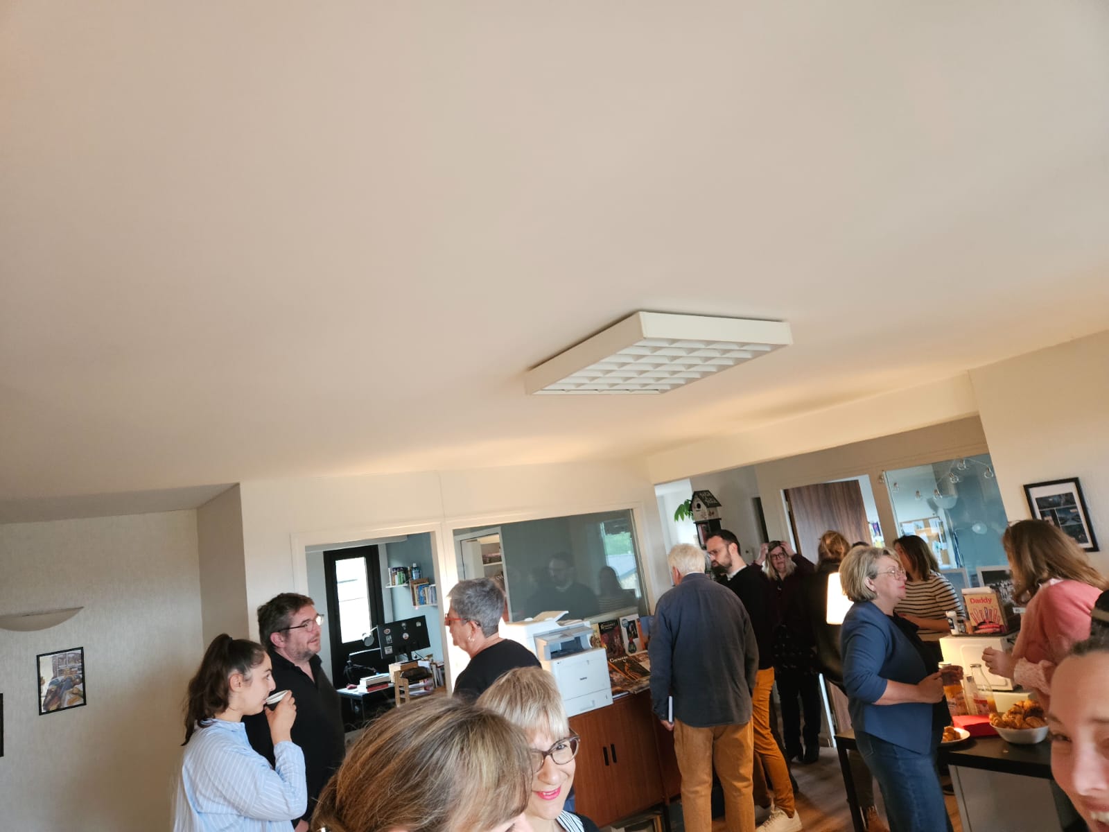 Les éditions rouennaises Petit à Petit ont accueilli vendredi 14 juin une dizaine d’adhérents dans leurs locaux. Autour d’un petit-déjeuner, Olivier Petit, fondateur, a présenté les sept membres présents de son équipe et l’histoire de sa maison d’édition. Trois pôles constituent l’organisation de la maison : administration (Nathalie) , édition (Pauline, Raphaëlle, Antoine et Lisa) et communication (Amandine et Ilona).