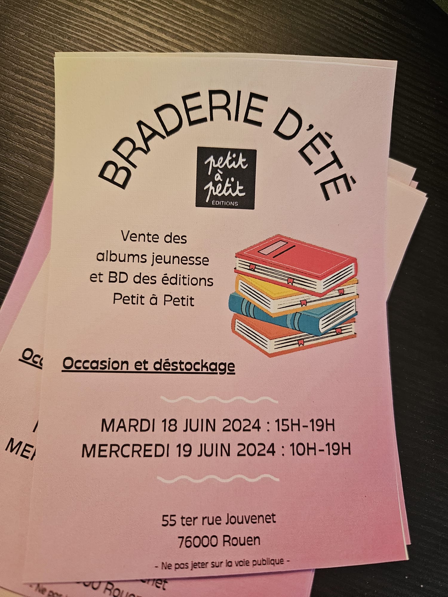 Il est encore possible de rencontrer l’équipe qui organise un destockage mardi 18 et mercredi 19 juin dans leur locaux. Autre actualité locale, le nouveau restaurant Guillaume (ex- Les Petits Parapluies), intégrera des planches BD des Éditions Petit à Petit dans sa décoration.