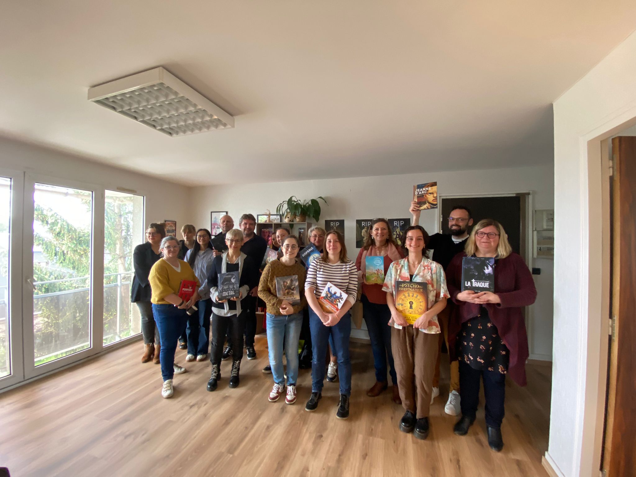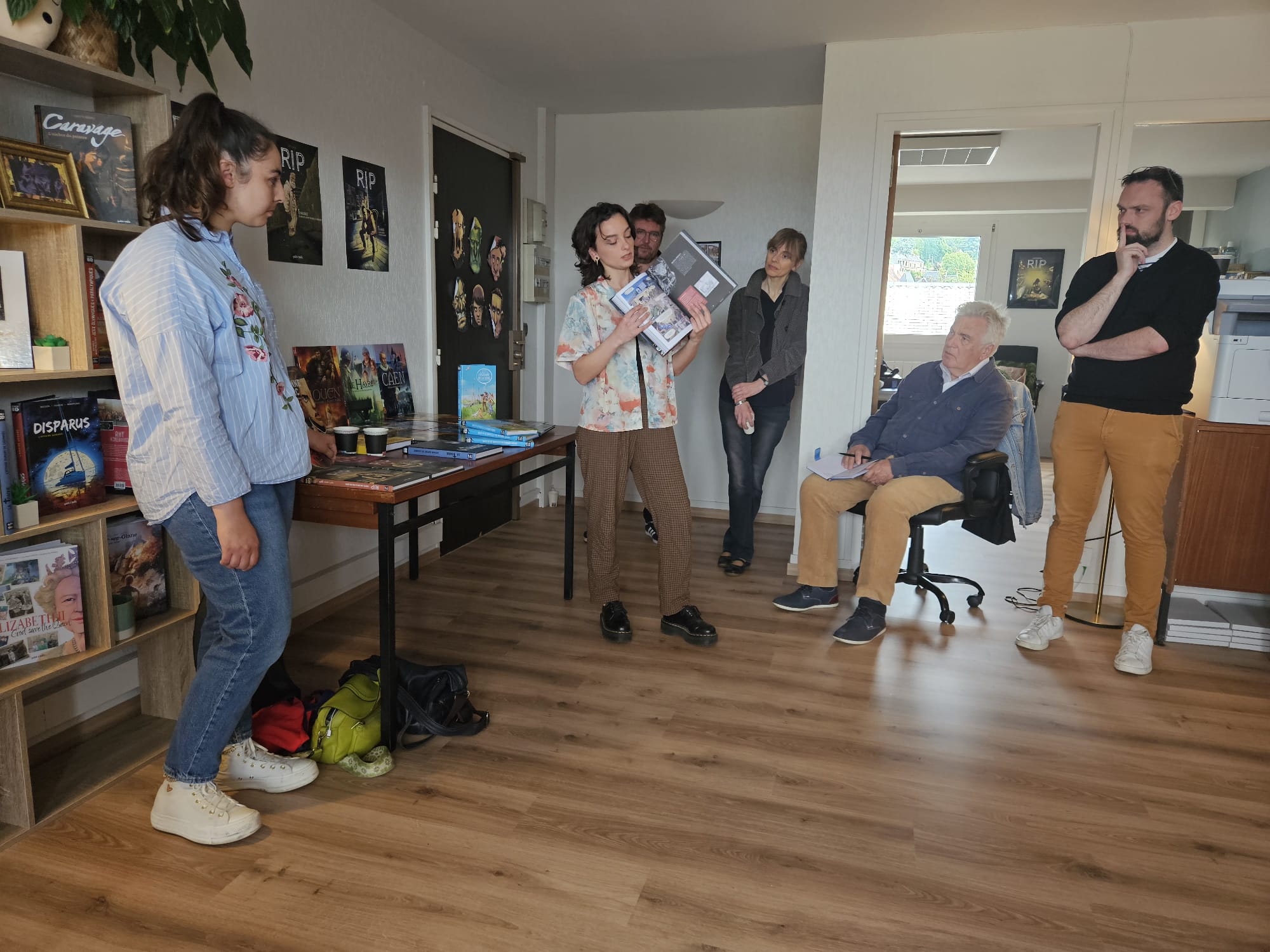 Dans le cadre de leurs bureaux, entourés par les nombreux exemplaires du catalogue, tel un showroom spécialement installé pour eux, les adhérents étaient absorbés par l’histoire de la genèse de certains ouvrages. Pauline Veschambes, responsable éditoriale, a présenté l’éventail des collections qui comptent 25 nouveautés par an. Il faut entre 9 mois et 2 ans pour sortir un ouvrage.
