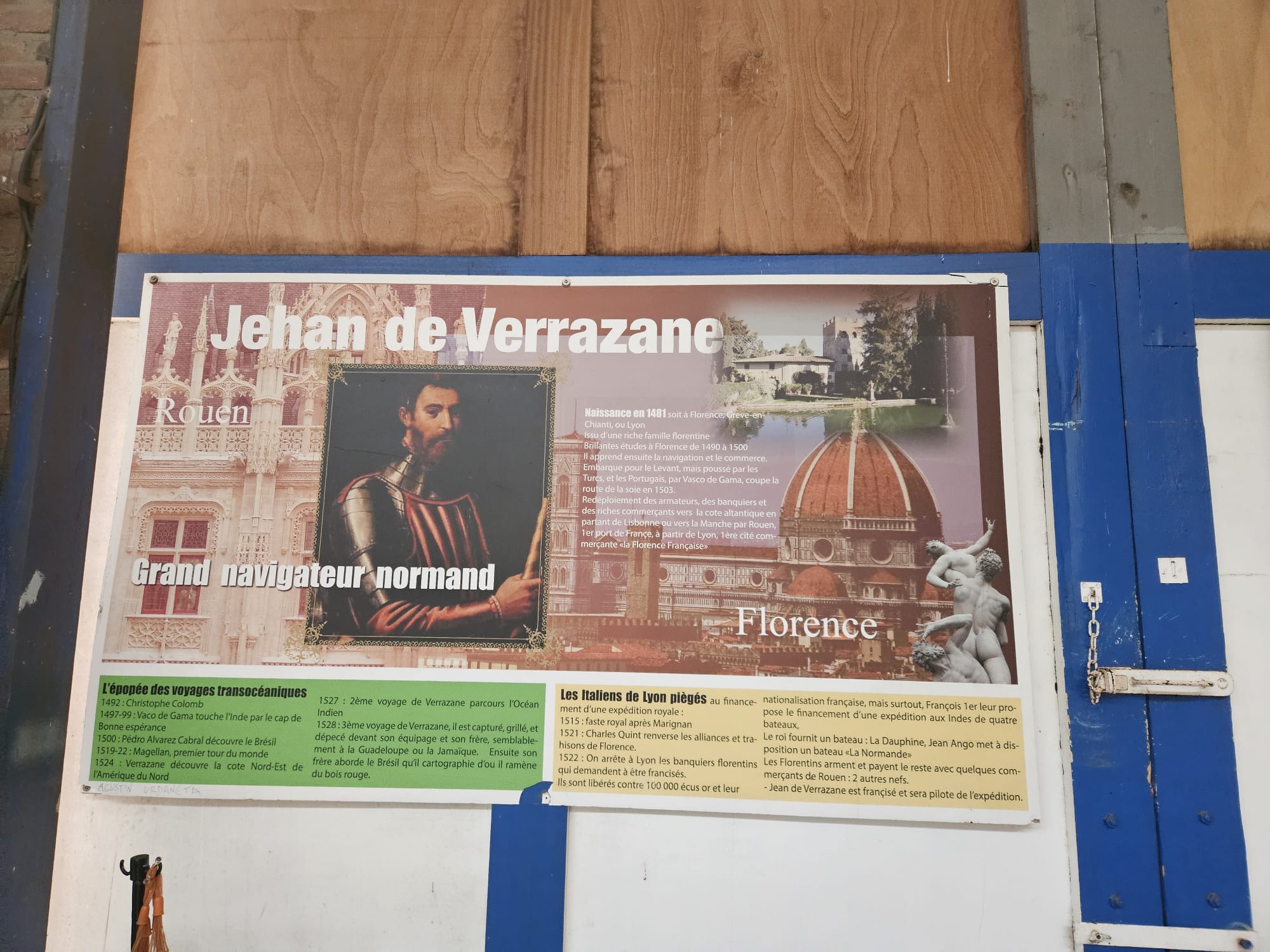 Et on y apprend aussi que c’est un Rouennais qui a découvert la baie de New York. Tout à fait ! Jean de Verrazane, le “premier européen dans la baie de New York”, vivait à Rouen avec sa famille. D’origine italienne, ayant grandi à Lyon, il est venu s’installer à Rouen. Il est parti une première fois du Havre pour trouver une nouvelle route des Indes à la demande de François 1er. Puis une autre fois de La Rochelle pour remonter toute la côté est de l’Amérique. Il est aussi connu pour être revenu de cette expédition sur La Dauphine avec tout son équipage au complet.