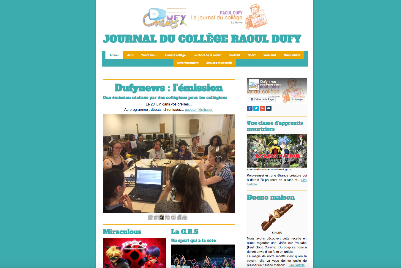 Accompagnement d’élèves de classes de 6e à 3e sur la réalisation d’articles destinés au site DufyNews, avec comme intervenant Olivier Bouzard, l’objectif étant d’aider les élèves à mieux comprendre l’approche journalistique.
